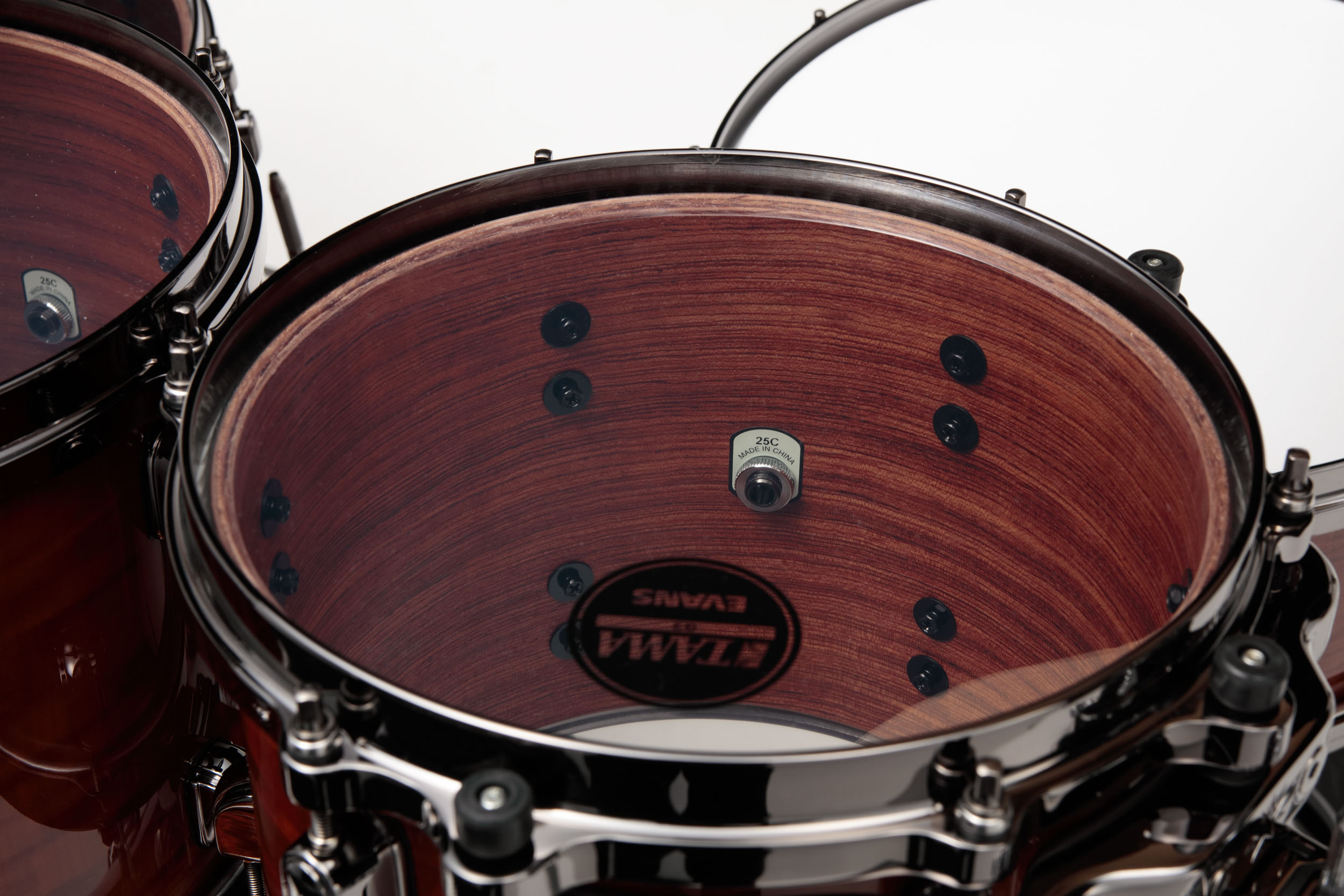 I 2006, i en tid da trommesett i stor grad ble laget av lønn eller bjørk, kom TAMA med en banebrytende introduksjon med det revolusjonerende Starclassic Bubinga. Dette settet forandret raskt landskapet til moderne trommer. Den dype og kraftige tonen utfordret konvensjonelle forestillinger om hvordan trommer kunne høres ut og tok umiddelbart verden med storm. Starclassic Bubinga etablerte seg som en ny standard for trommer av høy kvalitet og sementerte sin plass i trommeverdenen. Selv etter at det ble avviklet i 2018, forble innflytelsen uforminsket. Artister som nå er i det globale søkelyset, som Mario Duplantier og Eloy Casagrande, fortsetter å feire dens musikalitet og varige unike og kraftige lyd. Nå, i 2026, returnerer dette legendariske instrumentet endelig som en modell i begrenset opplag. Denne nyutgivelsen gjengir trofast den originale 9-lags, 6mm shellkonstruksjonen (7mm for skarptromme og basstrommer). Laget av dyrket afrikansk Bubinga, leverer det tette og tunge treverket tordnende bass, enorm kraft og en mørk tone som er unik for Bubinga. For å ytterligere fremheve treets dype bunn har tammer og gulvtammer dypere størrelser, mens basstrommen mangler en tamholder ? valg gjort for å maksimere treets naturlige resonans og rike tone. For den ytre kryssfineren valgte de en dristig afrikansk kirsebær med høy kontrast og definisjon. Sammen med elegant svart nikkelhardware har dette settet en autoritativ tilstedeværelse som visuelt matcher dens soniske effekt, og fanger oppmerksomheten og fantasien til alle som ser og hører det.