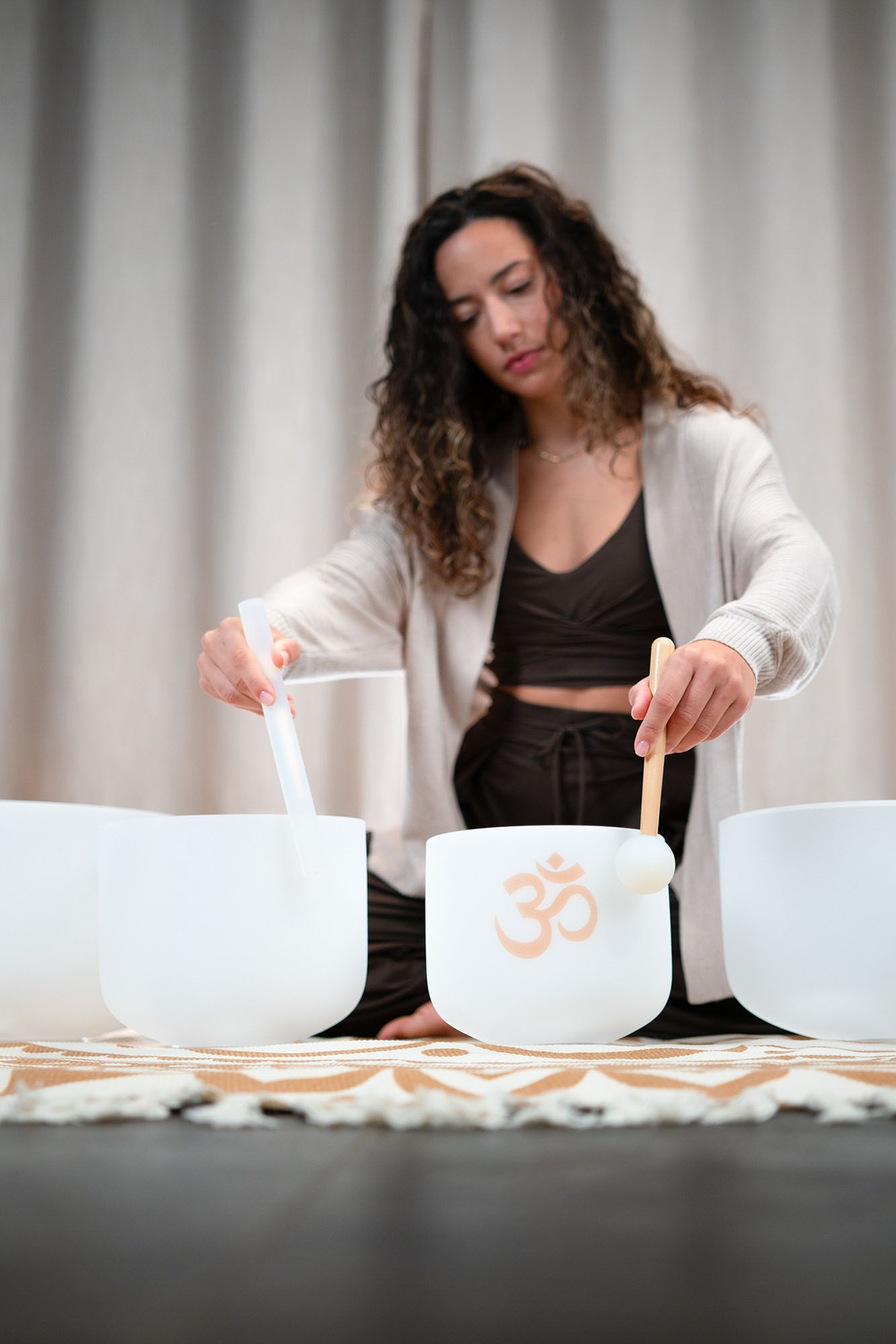 Du kan bruke Crystal Singing Bowls til en rekke formål: Chakrahealing, meditasjon, lydterapi, yoga, forbedring av din hemmelige Feng Shui, justering av din emosjonelle tilstand eller til og med til romdekorasjon. Dette firedelte Om-settet har en lett og inspirerende karakter som oppmuntrer til åpenhet, klarhet og emosjonelt uttrykk.