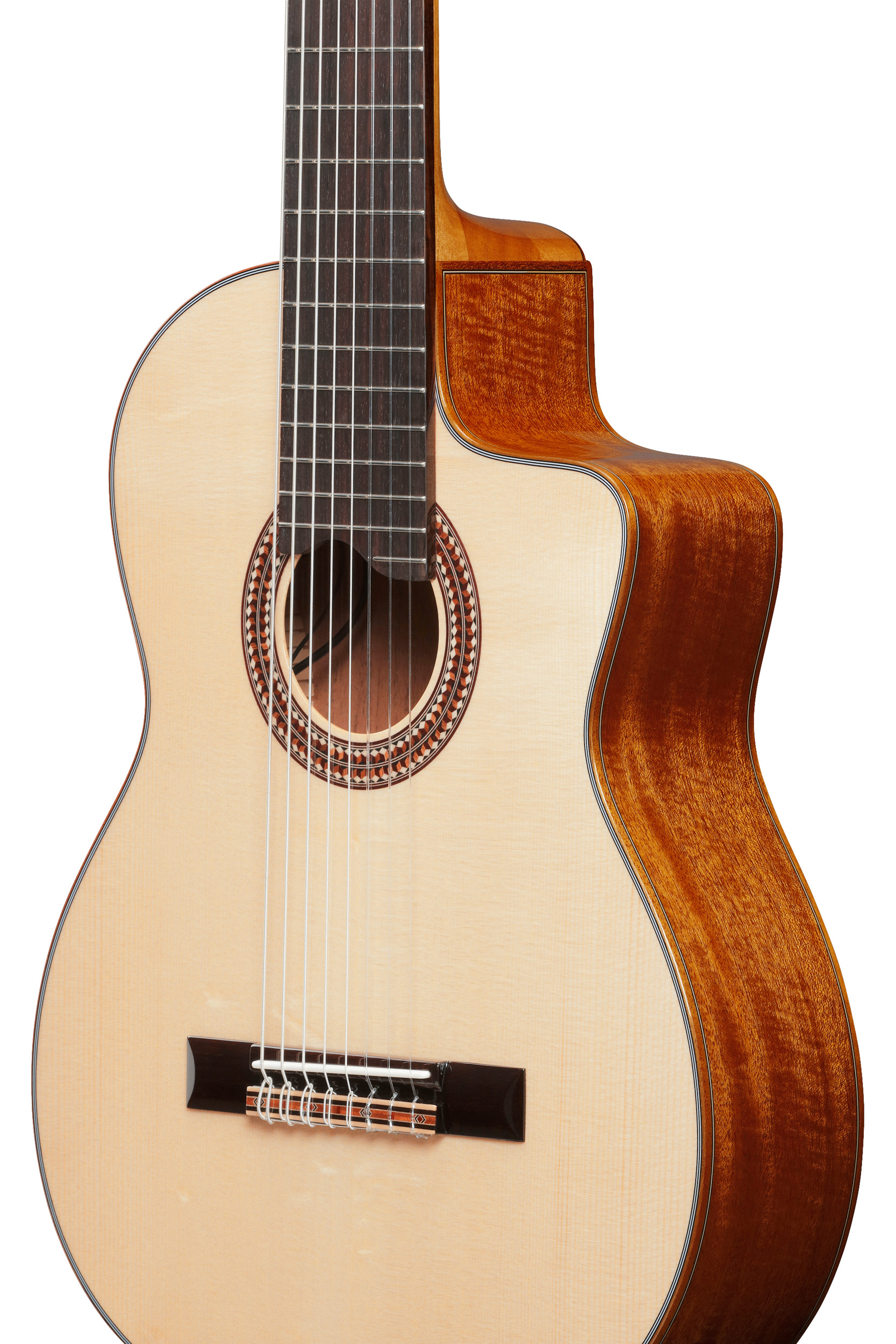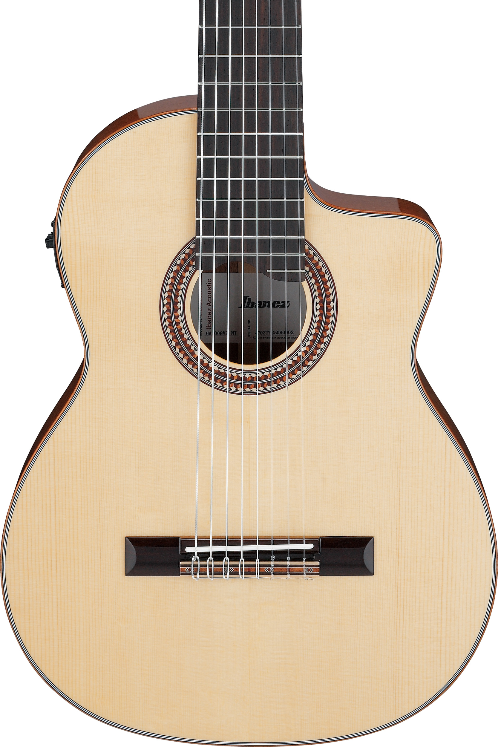 GA3008CE-NT är en elektrifierad 8-strängad klassisk gitarr med solitt granlock och mahogny
