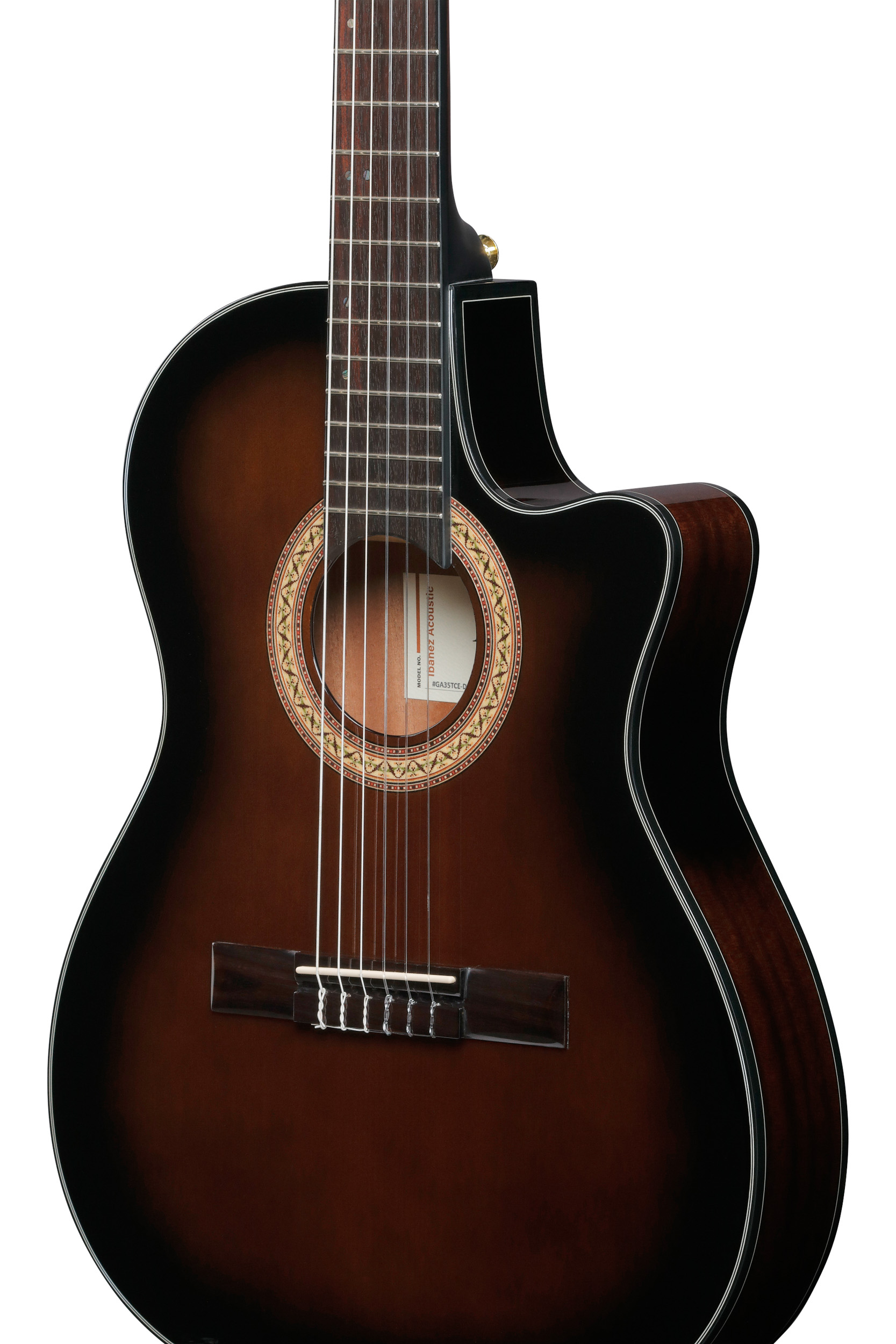 GA35TCE er en elektrisk klassisk gitar med tynnere kropp og smaleare hals (46mm) ved sadelen.