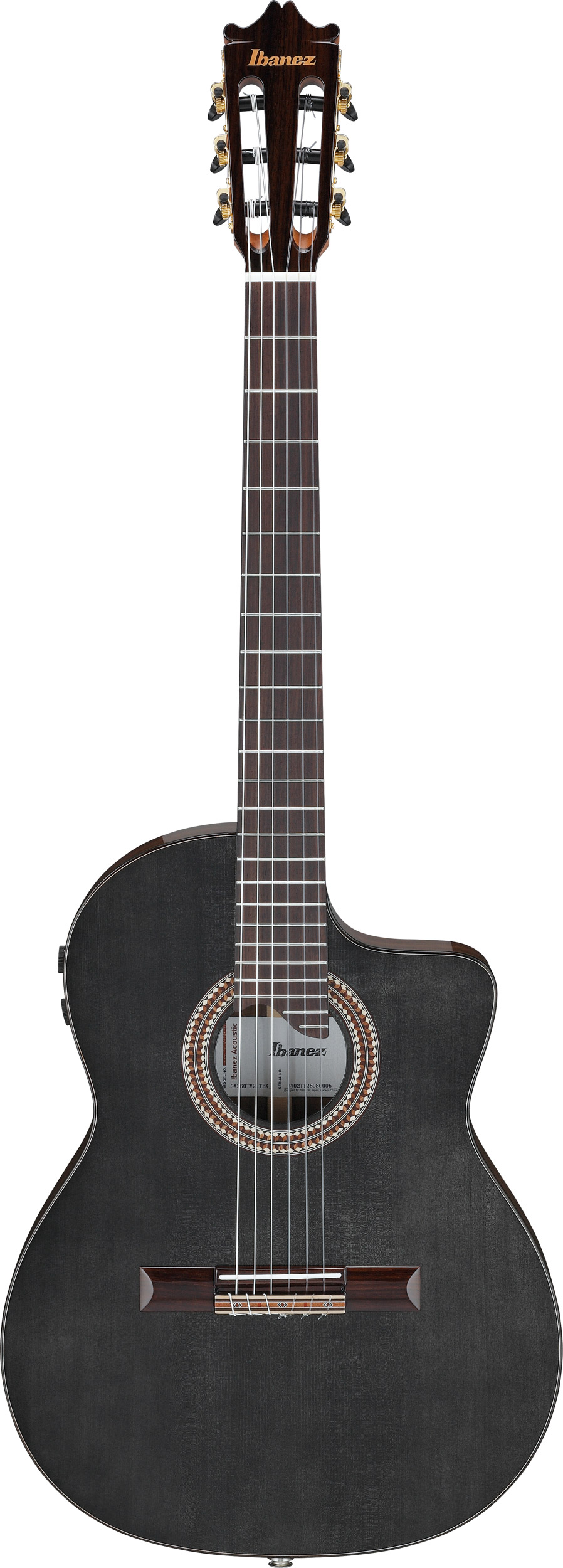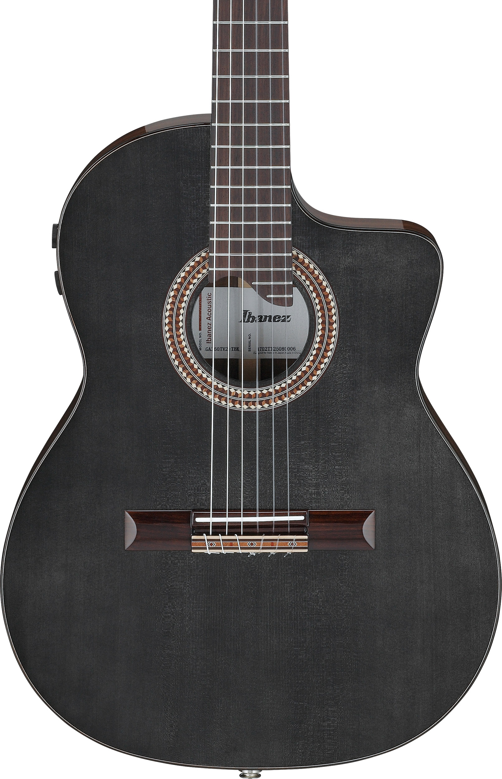 GA360TCE-TBK är en elektrifierad klassisk gitarr, har tunnare kropp, med solitt granlock och