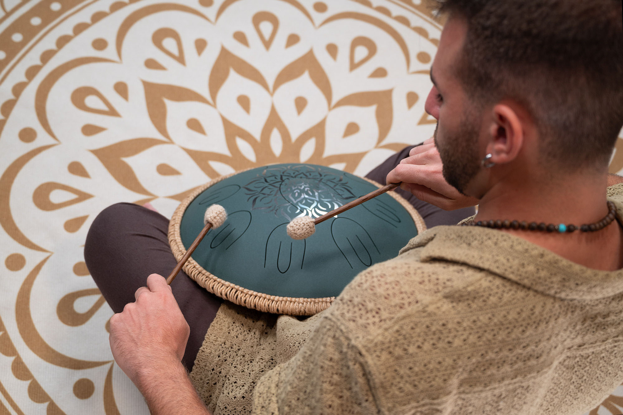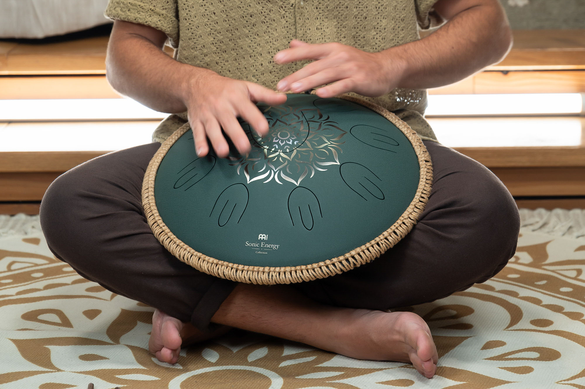 Meinl Sonic Energy 16" Octave Steel Tongue Drum, F#-Minor, 432Hz - OSTD3DGE. Dark Green, Floran Design.