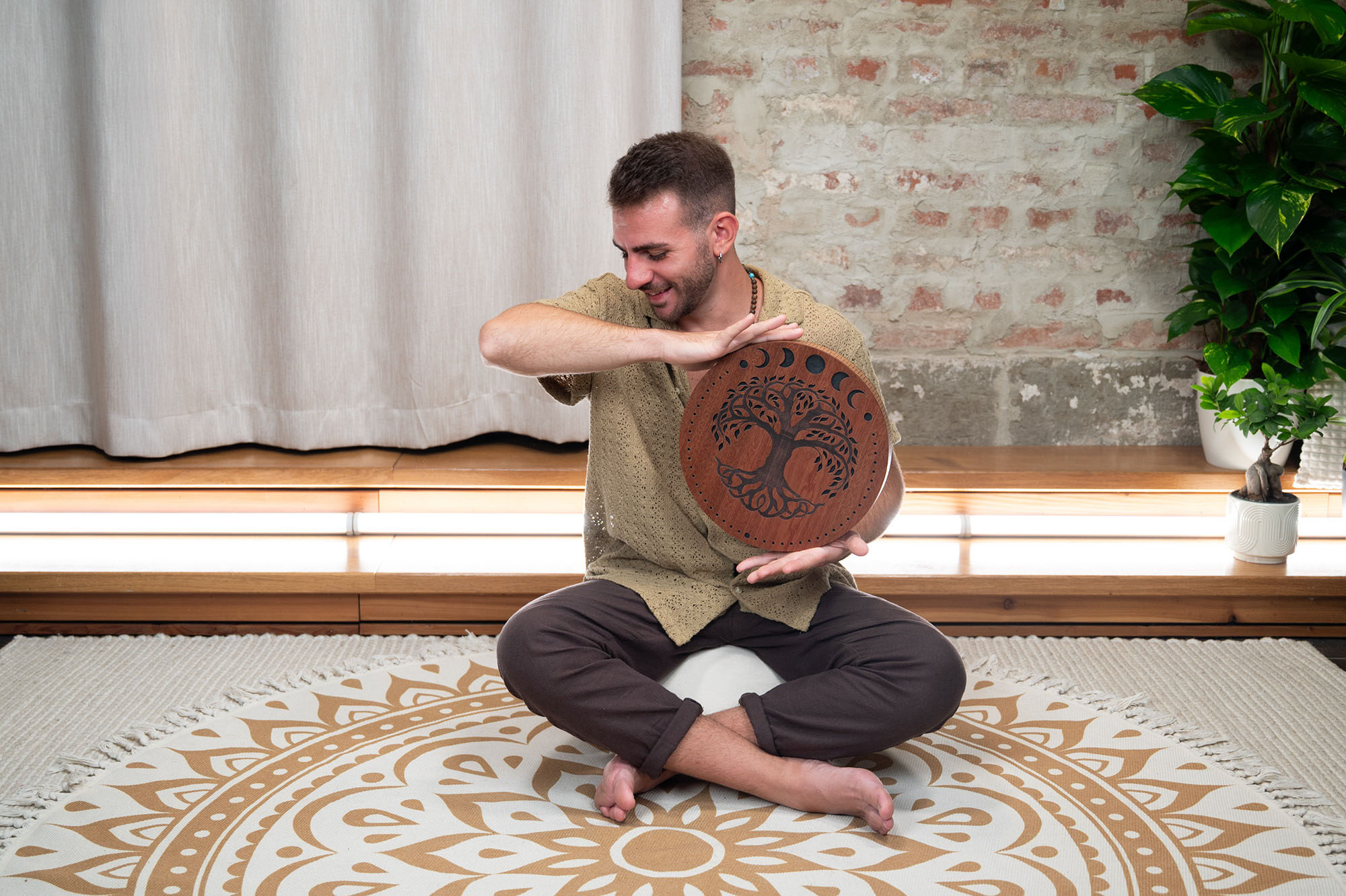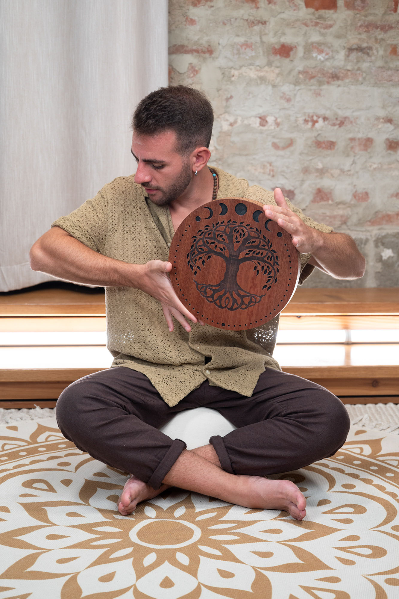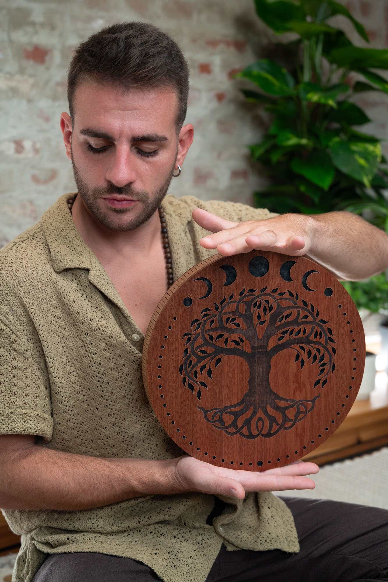 Meinl Sonic Energy Rain Discs er vakkert utskårne, lette instrumenter som gjenskaper den beroligende lyden av rennende vann. Ved å rotere dem forsiktig med begge hender, som et spinnehjul, setter du de indre elementene i bevegelse, og skaper en beroligende, naturlig vanneffekt. Den enkle handlingen å spille ? å føle bevegelsen og fokusere på lyden ? er meditativ i seg selv, noe som gjør Rain Discs perfekte for avslapning, lydterapi og mindful musikalske øyeblikk. Hver Rain Disk leveres med et mykt etui for beskyttelse og et trestativ for elegant fremvisning.