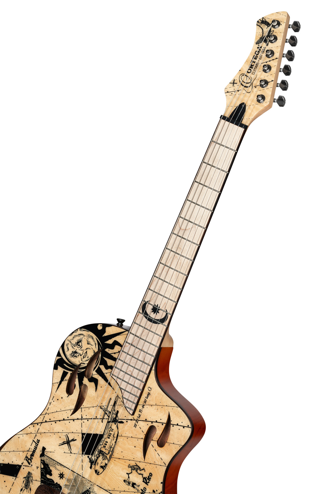 • Flamed Maple fretboard & Laurel bridge.