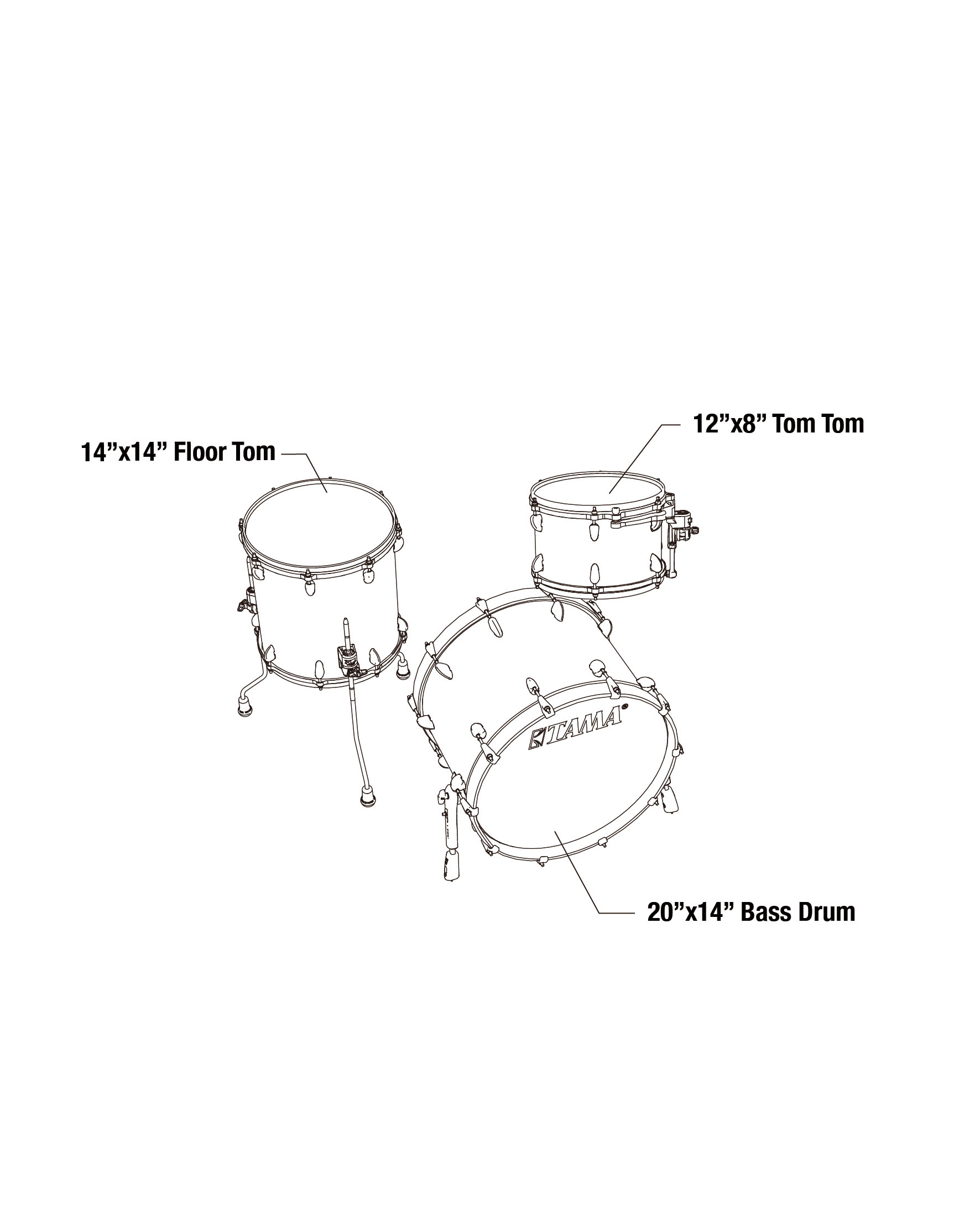 Shellkit bestående av: 12" x 8" hängpuka, 14" x 14" golvpuka och 20" x 14" bastrumma.