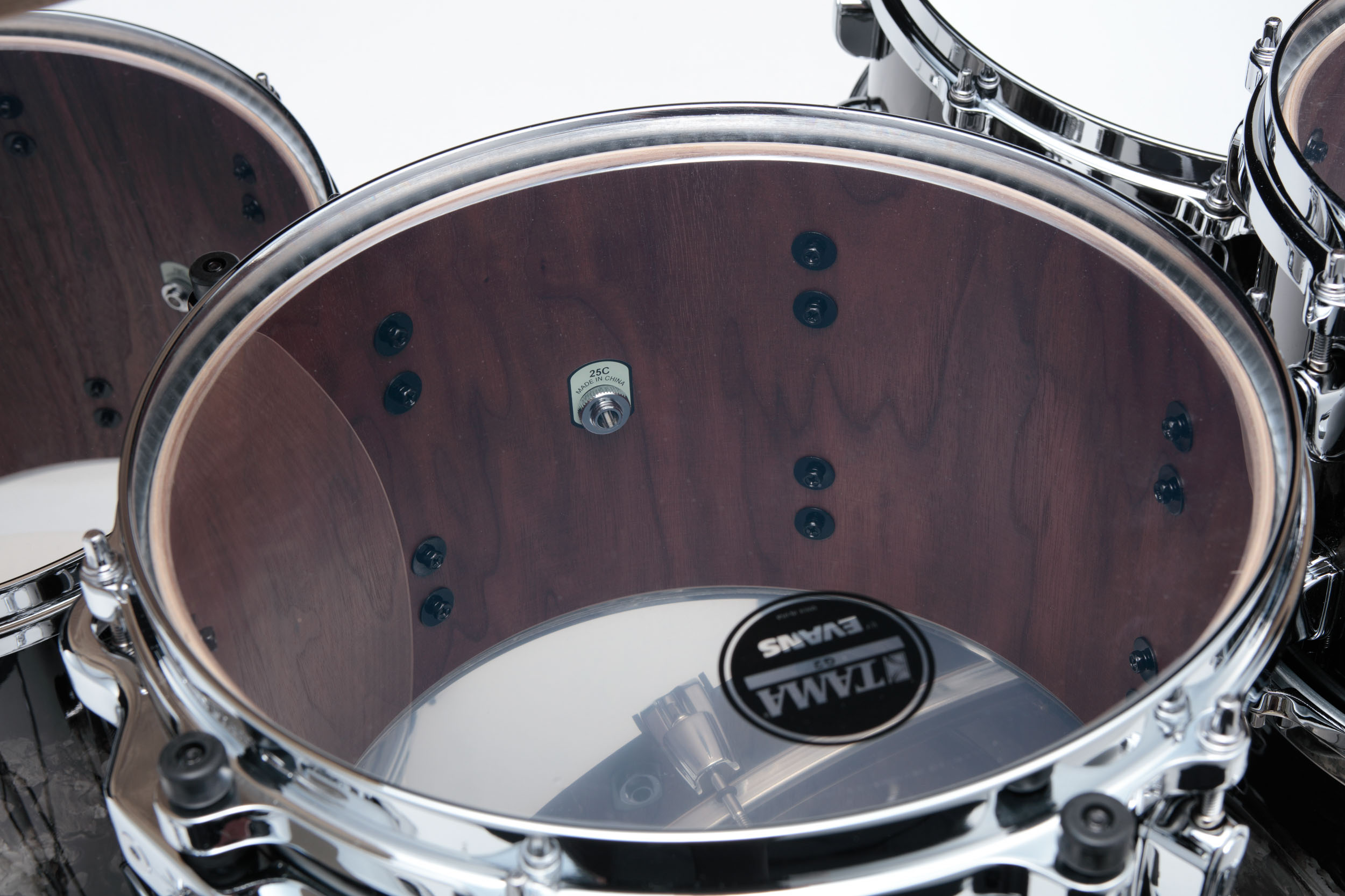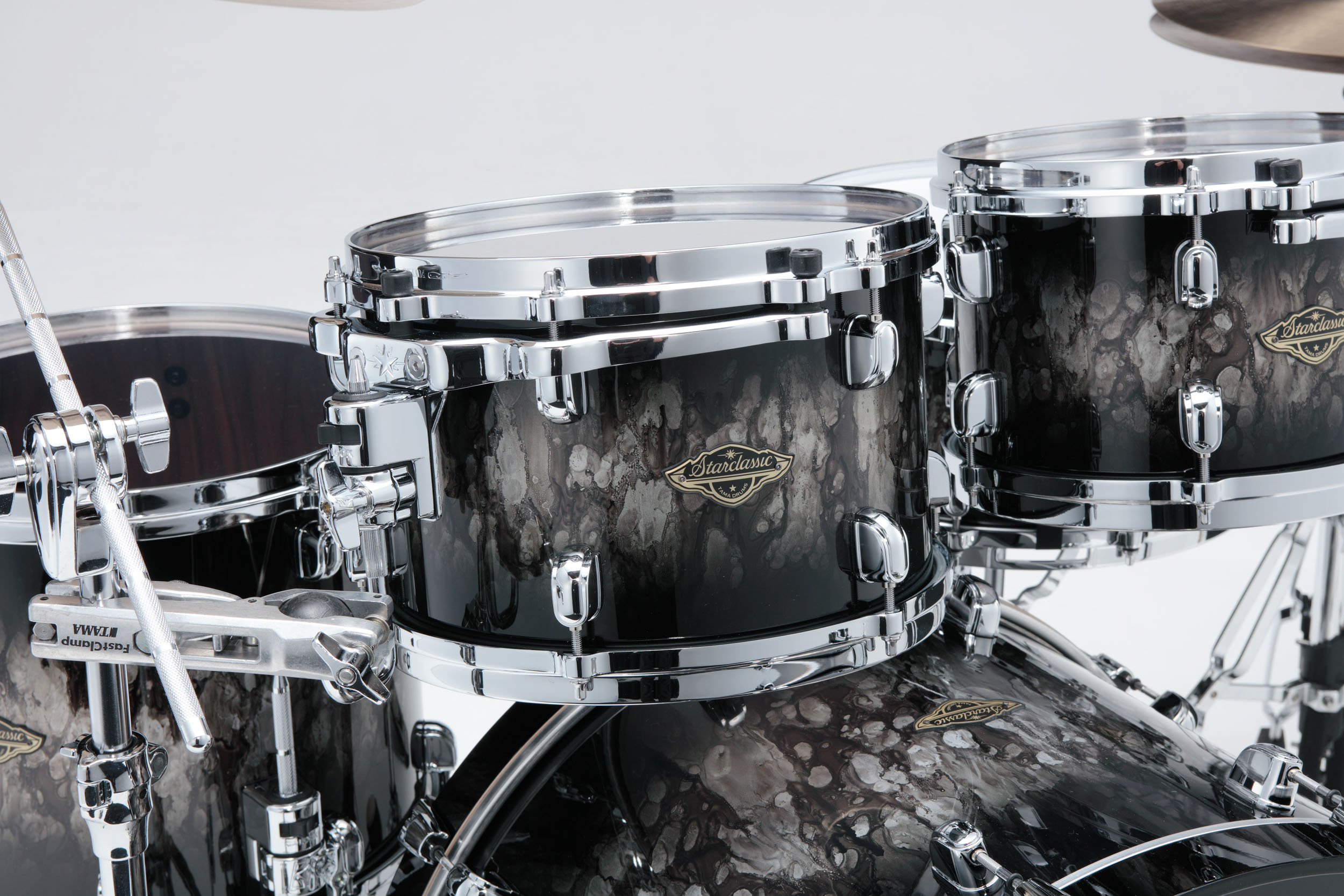 Walnut/Birch sett med 4 lag bjørk + 2 indre lag med valnøtt. Tama?s hybridsett kombinerer Walnut med Birch og leverer både stor fundamental tone og stabil bunn. Den tydelige og rene tonen gjør Starclassic W/B uhørt lettstemte uansett om man foretrekker høyt stemte enkeltlagsskinn, eller lavt stemte dobbeltlagsskinn. I likhet med alle Starclassic har Walnut/Birch Starclassic Lugs, Die-Cast Hoops, Star-Cast Mount med Quick-Lock tom-feste, for optimal lyd og håndtering. Starclassic W/B er helt unike, men allikevel fantastiske allround trommer.