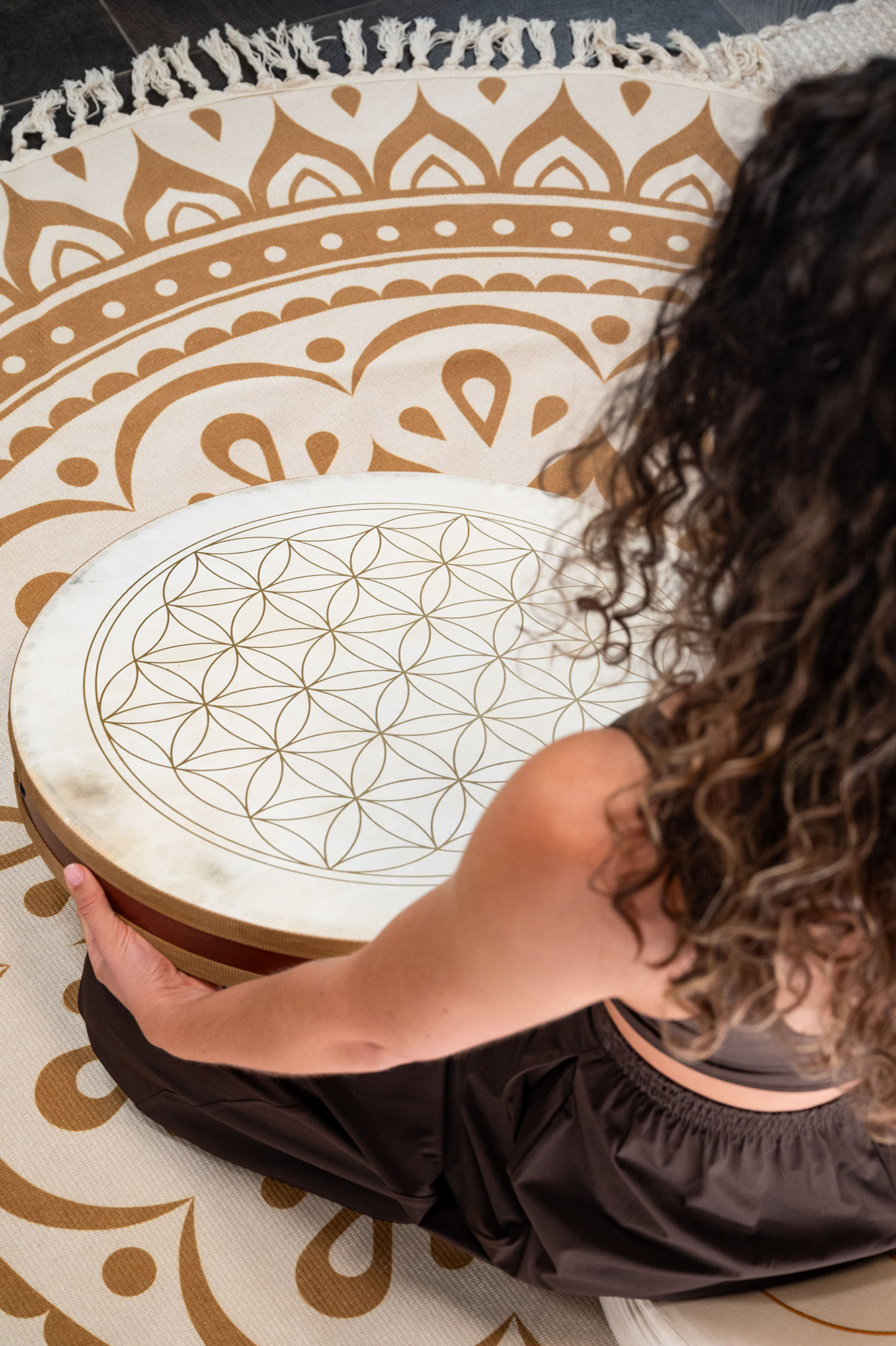 Flower of Life-bølgetrommene er laget av to naturlige geiteskinn og har et spesielt mykt fyll inni, noe som skaper en spesielt myk bølgelyd. Dekorert med den symbolske Flower of Life, har de også en sterk visuell og åndelig tilstedeværelse.
