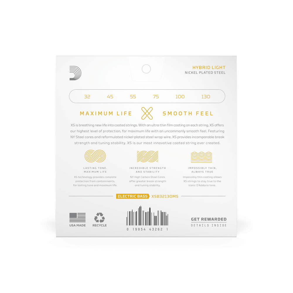 XSB32130MS. D'Addario Strängset Elbas, Coated Nickel Steel 32-130, Hybrid Light 6-str, Multiscale.